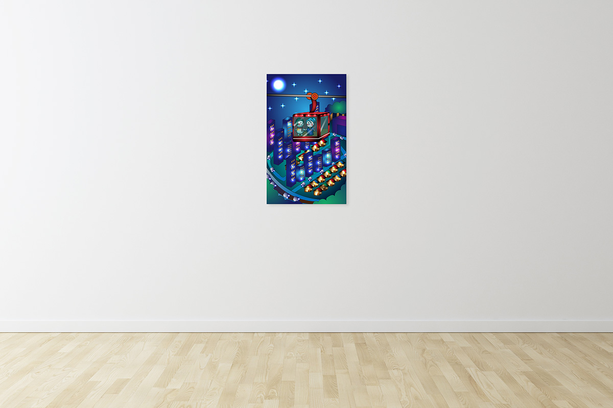 ストーリー仕立てのシリーズもの。影の描きこみや色使いに統一感を狙った。一枚だけみてもポストカードのように楽しめる。